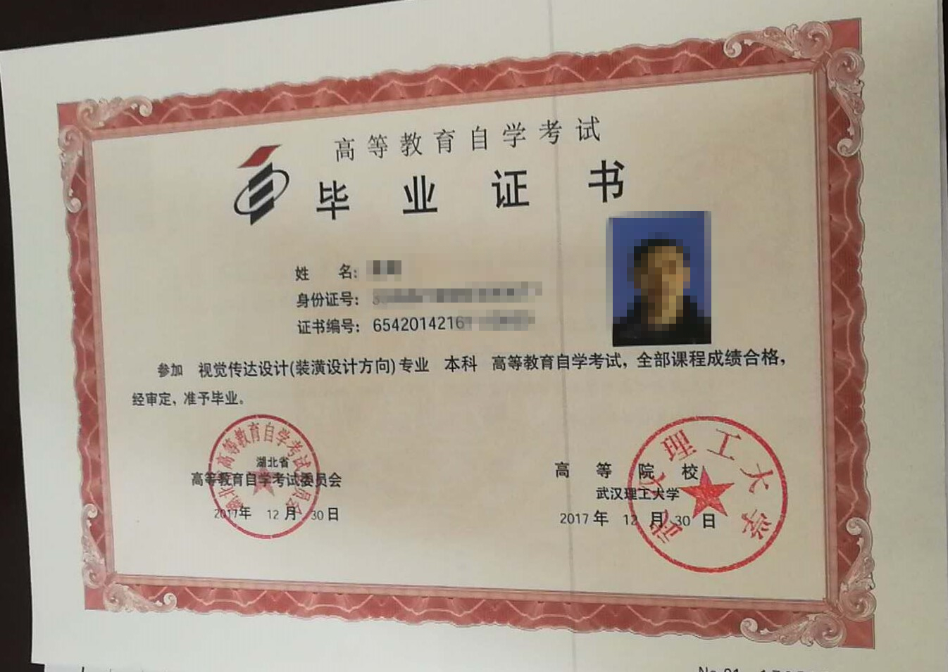 武汉理工大学自考毕业样本